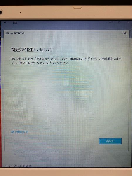 Windows10でPINコードを何度設定しようとしても毎回問題が発生しま