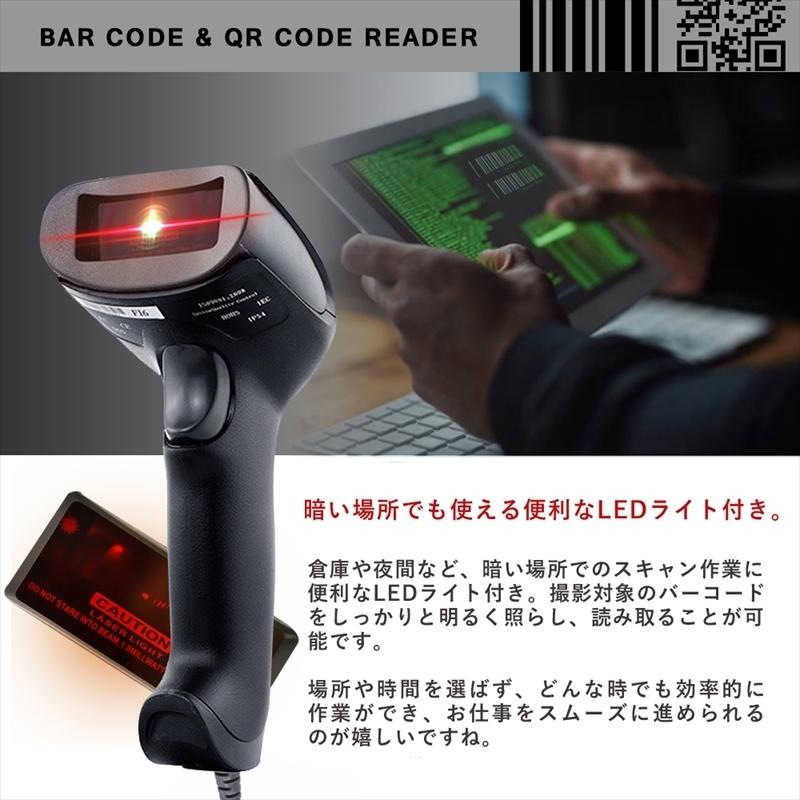 バーコードリーダー QRコード対応 2次元コード 1次元コード LEDライト